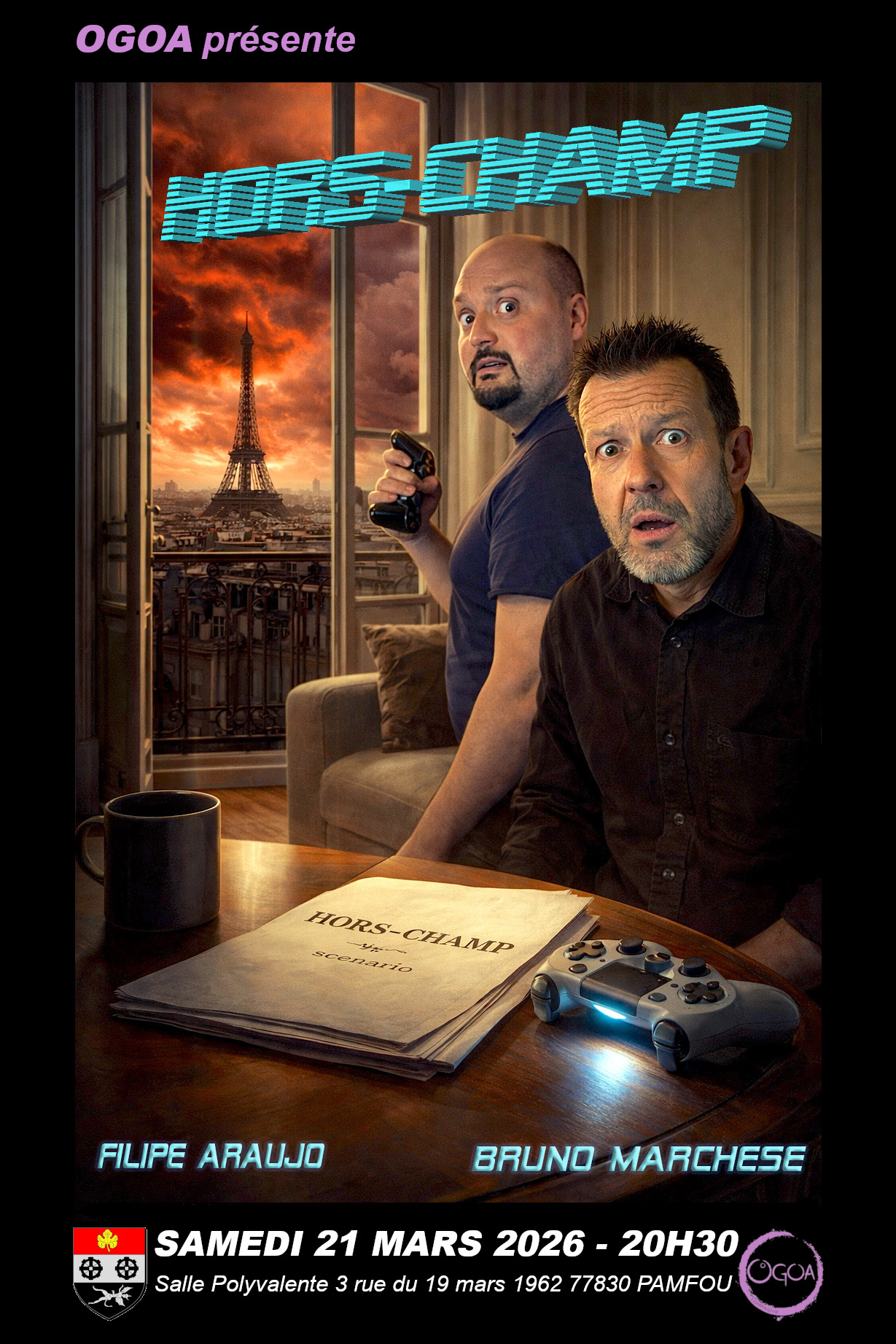| 8€La compagnie OGOA présente “Hors-Champ”, ouverture des portes à 20h00 pas de réservation, prix des places : adultes 8 € gratuit pour les scolaires